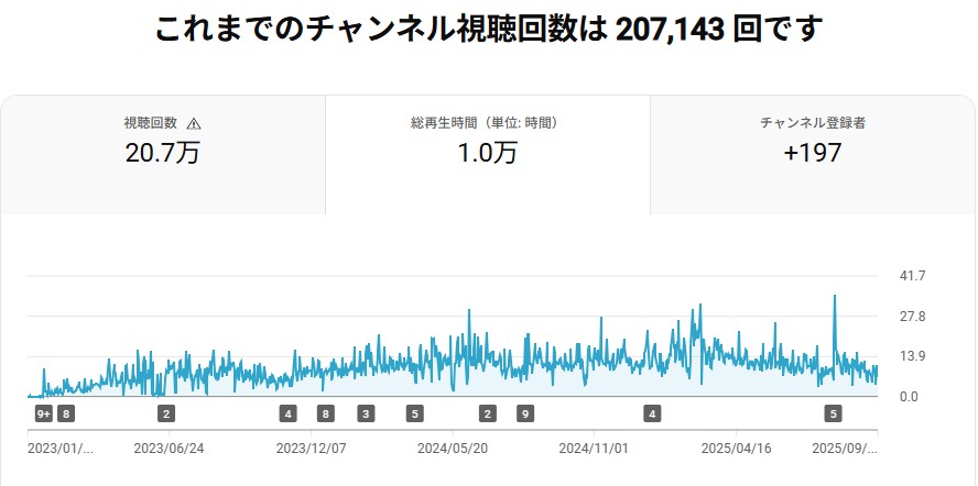 1万時間視聴(9/29) 3年前に始めたYouTubeによる配信ですが、おかげ様で視聴時間が1万時間を突破しました。最近の流行りは「うたう」のようです。たくさんの方がGoogle検索から来られているようです。(S)